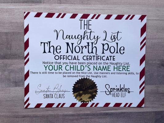 The North Pole Naughty List Certificate / Customizable Naughty Gift / Custom Gift for Boy or Girl / Custom Certificate from Santa